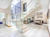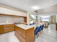 A striking double-volume entrance hall creates an immediate sense of scale and sophistication, setting the tone for the beautifully designed interiors beyond. The home flows effortlessly into expansive open-plan living areas, comprising a stylish lounge, generous dining space, and a sleek designer kitchen with ample cupboard space and a separate scullery, ideal for both everyday living and effortless entertaining.
