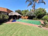 This charming residential property in Sunward Park, Boksburg, South Africa, offers a blend of comfort and practicality. The home presents an inviting kerb appeal with its modern brick and plaster facade, complemented by a lush, well-maintained front garden and a paved driveway leading to a spacious double garage. Visible security features, including electric fencing, contribute to peace of mind.