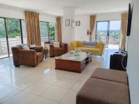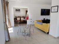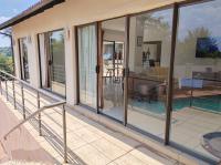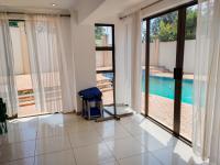 The home welcomes you through a bright, tiled entrance hall that leads into a spacious, sun-filled lounge. Designed for effortless entertaining, the lounge opens via sliding doors onto a balcony overlooking the sparkling swimming pool, creating a seamless indoor-outdoor flow.