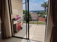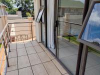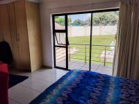 Two additional generously sized bedrooms feature built-in cupboards, downlights, vinyl flooring, and tranquil garden views. A modern guest bathroom includes a basin, bath, and toilet. The fourth bedroom is privately positioned, offering built-in cupboards, tiled flooring, and sliding doors opening onto the balcony with garden views.