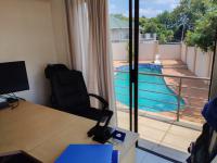 The home also includes a spacious office with tiled flooring and sliding doors leading to the balcony overlooking the swimming pool, ideal for working from home.