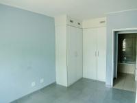 A generously sized bedroom with built-in cupboards, featuring an en-suite bathroom equipped with a bathtub and shower connection.