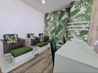 This modern, fully furnished one bedroom apartment offers an exceptional residential rental opportunity within the prestigious Blyde Riverwalk Estate in Pretoria. Spanning 38 square metres, the unit features a thoughtfully designed layout including one bedroom, one bathroom, and a comfortable lounge area. The contemporary kitchen is a highlight, boasting sleek two-tone cabinetry, marble-look countertops, and a full suite of integrated appliances, including a fridge, dishwasher, oven, hob, extractor fan, and washing machine. The living space is enhanced by stylish decor, a wooden slat accent wall, and a large smart TV, while the bedroom provides a plush upholstered bed, an abstract feature wall, and built-in storage. The bathroom continues the modern aesthetic with a walk-in shower, black fixtures, and a floating vanity.