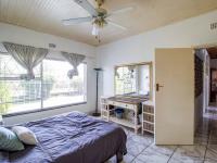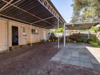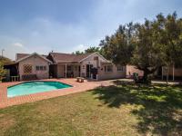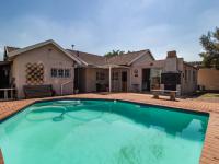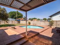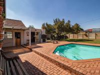 Outdoors, the expansive grounds host a sparkling swimming pool, offering a refreshing escape during warmer months. Parking is abundant with a single garage and additional space for three vehicles. The property also includes convenient domestic rooms and is pet-friendly, catering to every family need. Security is paramount, featuring robust burglar bars and a security gate for peace of mind.