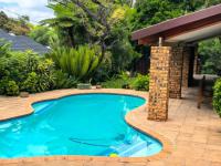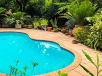 Outside, you’ll find a covered patio with built-in braai, a sparkling swimming pool, three garages with additional open parking, Extra storage, available, and an outside toilet.