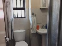 Security is a key highlight, featuring an access gate, alarm system, electric fencing, security post, burglar bars, and security gates, all contributing to a secure living environment within a gated community with 24-hour security and CCTV. Parking includes a single garage and two additional parking spaces. The property also benefits from fibre connectivity and a prepaid electricity meter.