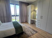 Residents benefit from the comprehensive security of the estate, featuring 24-hour security, security posts, access gates, and electric fencing. Additional amenities include a club house with gym, communal braai area with a swimming pool, and convenient lifts. Fibre connectivity and air conditioning throughout the apartment further enhance comfort and modern convenience. This modern residence offers a sophisticated lifestyle, blending sleek design with practical amenities in a vibrant gated community.