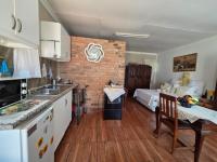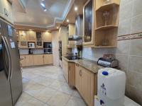 The spacious kitchen is fitted with ample cupboard space, durable melamine countertops, and a gas stove — perfect for efficient cooking and load-shedding convenience.