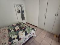 The kitchen is fitted with ample built-in cupboards, an electric stove with undercounter oven, extractor fan, double sink and space for a double-door fridge.