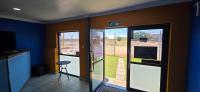 Glass windows looking out to Workshop 1 and 2