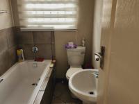 The residence offers three well-proportioned bedrooms, providing ample accommodation for family members or guests. Complementing these are two functional bathrooms, each featuring a bathtub with an integrated shower mixer, a toilet, and a pedestal sink, all surrounded by durable tiled walls. Natural light and privacy are managed by windows fitted with blinds.
