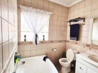 Accommodation comprises three bedrooms, with the main bedroom featuring an en-suite bathroom for added privacy. One bedroom is equipped with an air conditioning unit, and all benefit from natural light and tiled floors. The property's outdoor amenities are a highlight, featuring a large swimming pool, a spacious garden with mature trees, and a comfortable enclosed lapa with a built-in braai, ideal for outdoor entertaining. Paving around the pool area and a well-kept garden enhance the outdoor apearance.