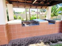 The apartment offers a lovely open-plan kitchen and lounge area with sliding doors that lead out to the green gardens where the children can enjoy the extra space of the garden. The kitchen has built-in cupboards and an electric hob and undercounter oven. The three bedrooms all have built-in cupboards, ceiling fans and the main bedroom has an aircon and sliding door that also leads out to the gardens. The en-suite bathroom is a full bathroom and the guest bathroom has a bath, toilet and [hidden];