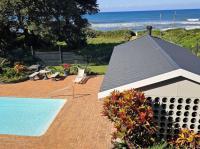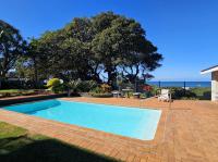 Step into coastal living with this lovely beachfront two-bedroom apartment, offering uninterrupted sea views from the moment you enter. The open-plan kitchen, dining, and lounge area flows effortlessly onto a patio, perfect for relaxing or entertaining while overlooking the communal braai area, sparkling swimming pool, and the ocean just steps [hidden];