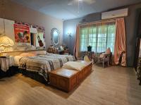 peaceful farm-style atmosphere. Accommodation includes three en-suite bedrooms in the main house, a separate two-bedroom flatlet with en-suite bathrooms, kitchenette, and small [hidden];