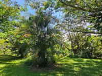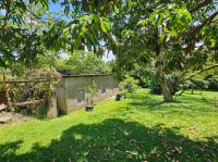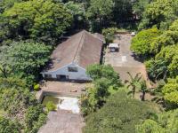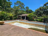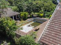 Just beyond the patio to the left of the house is the pool and entertainment area, featuring a large swimming pool (in need of repair)