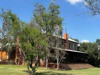 Natural features include two large interconnected dams with waterfalls fed by boreholes, the Hex River running past the property, landscaped grounds, walking and biking paths, and an enclosed boma near the river.