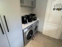 The property boasts a private swimming pool, perfect for relaxation and entertaining, complemented by a paved patio and a built-in braai for al fresco dining. The expansive, well-maintained garden provides ample space for outdoor activities, complete with an irrigation system. Additional practical features include a dedicated study, a pantry, a guest toilet, staff quarters, and a convenient laundry area, catering to all household needs.