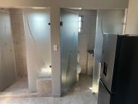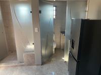 Modern Shower with separate toilet with basin , Walls all round with Cctv cameras all round and Lock up gates with paving