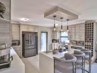* Stylish kitchen with large island, gas hob, and wine rack