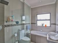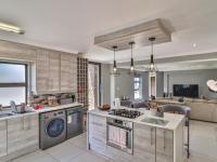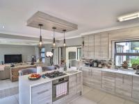 Inside, you'll find a beautifully designed open-plan living and dining space that just feels right. The heart of the home is undoubtedly the contemporary kitchen, boasting a large island with a gas hob, chic pendant lighting, and even a built-in wine rack – perfect for entertaining or just enjoying a quiet evening. The living areas features a gas fireplace, and leads through to your enclosed braai room. Stackerdoors open out to your private garden and heated swimming pool. Perfect for lazy summers days.