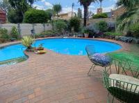 Beyond the interiors, the expansive 1101 sqm erf unfolds into a captivating outdoor oasis. A sparkling swimming pool invites leisurely afternoons, while the ample grounds offer potential for bespoke landscaping or further recreational enhancements. The property also boasts a valuable flatlet, presenting versatile options for extended family, guest accommodation, or a private home office. Secure parking is provided by a double garage, complementing the pet-friendly environment.