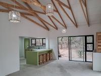 Nestled within the renowned wildlife estate of Marloth Park, this modern-rustic property offers a unique opportunity to embrace bushveld living. The exterior boasts a contemporary design with a light-coloured finish and a classic red tiled roof, complemented by expansive glass doors and windows that invite the natural surroundings indoors. From the living area is an outdoor braai area and swimming pool. The entertainment area overlooks the parkland.