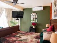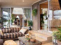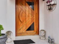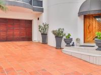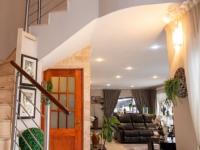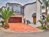 Discover an exquisite residence of architectural distinction nestled within a prestigious golf estate in New Redruth, Alberton. This modern, two-story home immediately captivates with its unique curved facade, expansive tiled driveway, and lush tropical landscaping, creating an impressive curb appeal that speaks to sophisticated living. The double garage seamlessly integrates into the design, offering both convenience and aesthetic harmony.