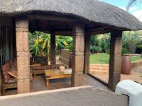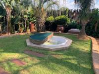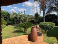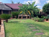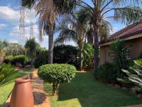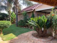 Discover this charming suburban home in Glenanda, Johannesburg, immediately welcoming with its secure, ornate double gate and high boundary wall. Mature palm trees and cycads enhance the curb appeal, leading to a paved driveway and a house featuring a classic tiled roof.