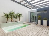 Three spacious en-suite bedrooms, a comfortable lounge, office nook, and separate laundry. Sliding doors lead to a swimming pool and low-maintenance garden, with an additional guest cloakroom.