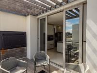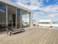 Elegant open-plan living with a well-appointed kitchen, walk-in pantry, and separate scullery. Lounge and dining area with fireplace open onto a large balcony with partial sea views and an outdoor braai area, perfect for entertaining.