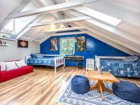 Upstairs, four luxurious en-suite bedrooms surround a pyjama lounge, with the main suite offering a walk-in closet and expansive bathroom. An attic-style bedroom creates the perfect teen retreat or creative studio.