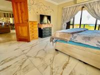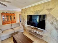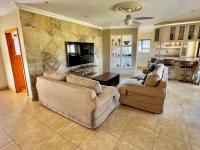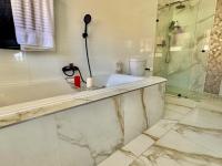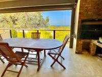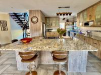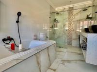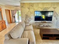 Upstairs, a second lounge and sleek bar area create a relaxed entertainment zone that opens onto a generous balcony with a built in braai and jacuzzi. Here, elevated sea views set the tone for slow mornings and relaxed evenings. The main bedroom forms a private retreat with a luxurious en suite and its own balcony, while two additional bedrooms and a spacious family bathroom complete the upper level.