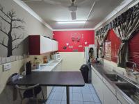 Inside, the residence boasts four bedrooms and three bathrooms, which they have devided into a flatlet with one bedroom, a bathroom a lounge and a kitchenette,ensuring privacy and convenience for all occupants. The layout includes two distinct kitchens, two dining rooms, and two lounges, providing versatile living arrangements and plenty of room for family gatherings or quiet [hidden] tiled flooring throughout offers durability and easy maintenance, and large windows ensure good natural light in most areas. The open-plan design in certain sections further enhances the sense of space.