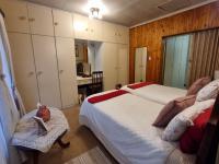 Accommodation includes five bedrooms with built-in cupboards and three-and-a-half bathrooms. The main bedroom enjoys its own en-suite, while one tiled bedroom with en-suite is ideal for guests or extended family.