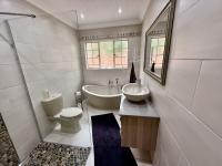 Three spacious bedrooms with ample cupboard space and a modern, full guest bathroom. The main bedroom has its own large and modern en-suite bathroom. With an open plan kitchen boasting ample cupboard space and granite countertops, as well as a dishwasher connection. A separate, well-sized laundry flows out of the spacious kitchen hosting several electrical appliances. The large study with built-in cupboards is providing the ideal work-from-home space for added convenience.