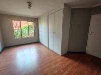 Outside, the property boasts a private garden area, perfect for outdoor enjoyment and for pets, as they are allowed. Practical features include two dedicated parking spaces. A built-in braai and paving enhance the outdoor living experience. The property is totally walled and secured with a fence, access gate, burglar bars, and a security gate, offering peace of mind.