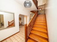A grand entrance hall with an elegant staircase welcomes you into the home. To the right, an informal sitting room flows through to a six-seater dining room, featuring beautiful wooden sliding doors that open to the outside. Adjacent to the dining area is a convenient cutlery and serving room, which connects seamlessly to the spacious kitchen.
