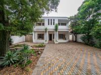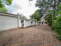 The ground floor also features a second lounge, guest toilet, and access to the four garages, one of which leads to an additional room ideal for a storeroom or workshop. The property provides secure parking for up to ten vehicles, including six additional parking spaces.
