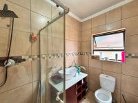 Main en-suite bathroom with toilet, shower, and wash basin