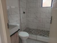 This modern property offers three bedrooms and two bathrooms, with the main bedroom featuring an en-suite bathroom. The home has an open-plan layout where you enter through the front door into the dining area and kitchen, which flow seamlessly into a spacious living area, creating a comfortable and welcoming space for everyday living and entertaining.