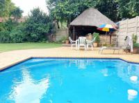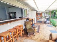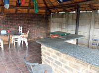 The lapa includes a built-in bar counter, and the pool is heated. A large shady