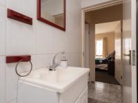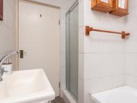 The single bathroom features a shower, bath (with a hand shower), vanity, and two wall-mounted cupboards.