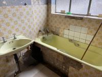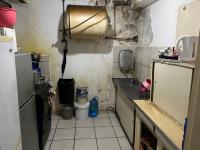 Inside, the 57 sqm unit comprises one lounge, one kitchen, and one bathroom. The interior features original parquet flooring and large windows that invite natural light. Built-in storage is available, enhancing practicality. It's important to note that the unit requires cosmetic renovation, with visible signs of wear, stained walls, and worn fixtures, offering a blank canvas for modernization and personalization.