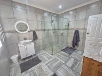 The home features a modern kitchen with elegant quartz countertops, ample cupboard space, and a separate scullery and laundry area for added convenience. Open-plan living areas create a comfortable space for both family living and entertaining.