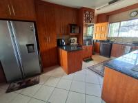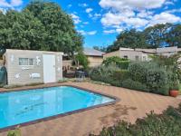 The home features an open-plan dining and entertainment area fitted with a fireplace and air conditioning, creating a warm and inviting atmosphere. For the entertainer, there is a covered entertainment room with a built-in braai and bar, overlooking the sparkling swimming pool and beautiful garden. Two lapas next to the pool provide additional space for relaxing or hosting guests.