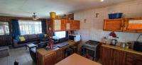 Kitchen with solid wood cupboards, gas stove and electric oven
