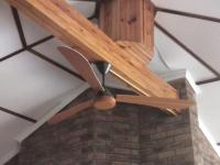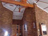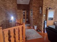 The spacious open-plan kitchen, dining, and living area forms the heart of the home and flows seamlessly into a closed veranda fitted with quality aluminium shutters, ideal for year-round enjoyment. The kitchen features solid oak cupboards, while beautiful oregan pine ceilings add warmth and character. Striking oregan pine stairs lead to a mezzanine level offering a large additional living area and a dedicated space ideal for a home office.
