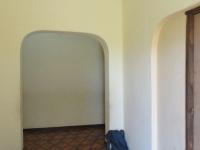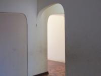 Step inside to find a layout comprising three bedrooms and one bathroom, alongside a dedicated lounge and dining room, providing ample space for family living. Architectural character is evident through features like arched doorways and patterned floor tiles, which, while currently dated, offer a unique base for a modern transformation. The interior spaces, including the kitchen, are well-lit by natural light but clearly indicate a need for comprehensive updating. The kitchen, equipped with existing cabinetry and a double sink, is functional but requires a complete overhaul to meet contemporary standards, offering a blank canvas for your dream culinary space.