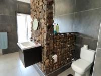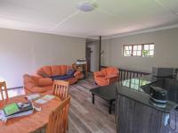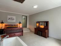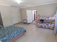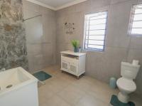 Additional living spaces enhance the property’s versatility. The first flat links to the main house and includes an open plan bedroom and kitchenette, plus a bathroom with shower, basin, and toilet. The second home at the bottom of the erf is double storey, offering two bedrooms and a bathroom downstairs, a lounge open to the kitchen, and upstairs another large lounge, bedroom, and bathroom.